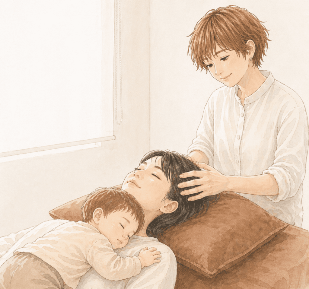 ヘッドケアが進むにつれて、ママの呼吸が少しずつ深くなっていくと…